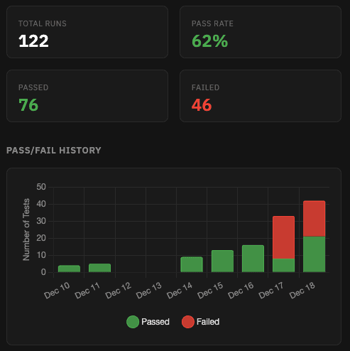 Replay executions, track pass/fail history, and understand how your tests perform over time.